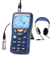 Measures acceleration, Velocity and displacement RMS, EQ PEAK and EQ P-P measurement Wide range of vibration measurement by using different sensitivity of accelerometers Backlight LCD display Maximum/Minimum record function Earphone output for detecting noise in machine components Manual memory stores up to 99 data